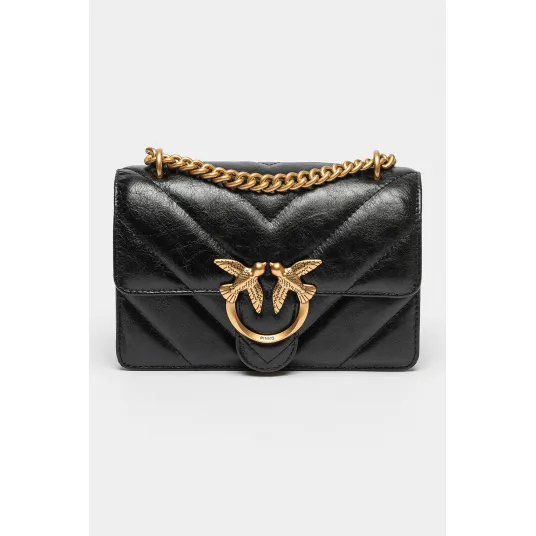 Pinko, Geanta crossbody mica de piele cu aplicatie logo metalice Love One, Negru