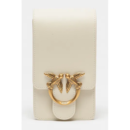 Pinko, Geanta din piele pentru telefonul mobil Love One Smart, Alb murdar