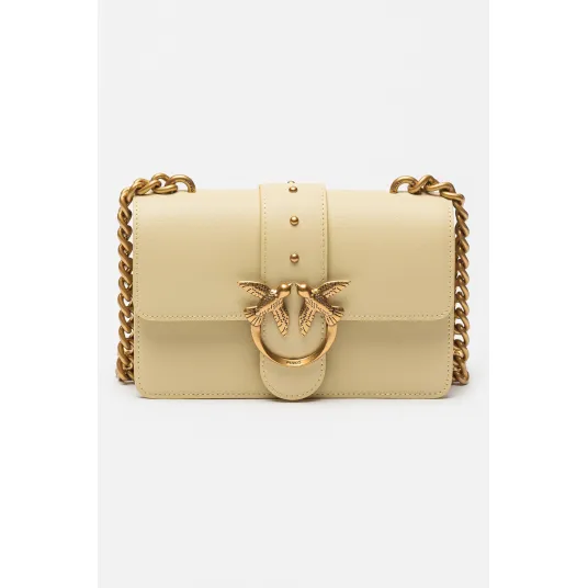Pinko, Geanta mica crossbody de piele Love One, Crem