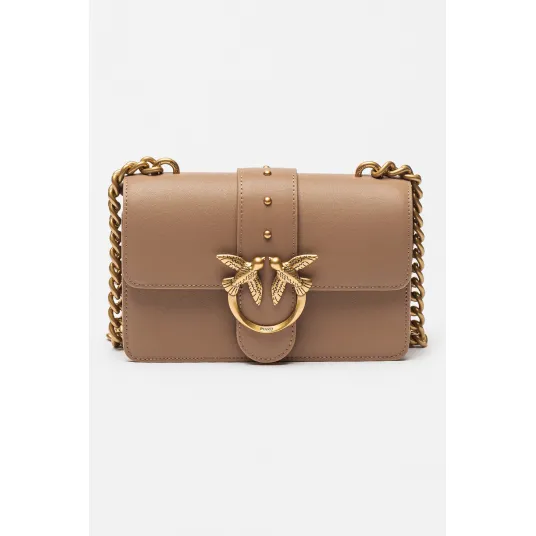 Pinko, Geanta mica crossbody de piele Love One, Maro fango