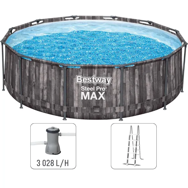 Piscina Bestway 5614X Steel Pro Max 366х100 cm, 9150 L, cadru metalic, cu pompa de filtrare si scara in set