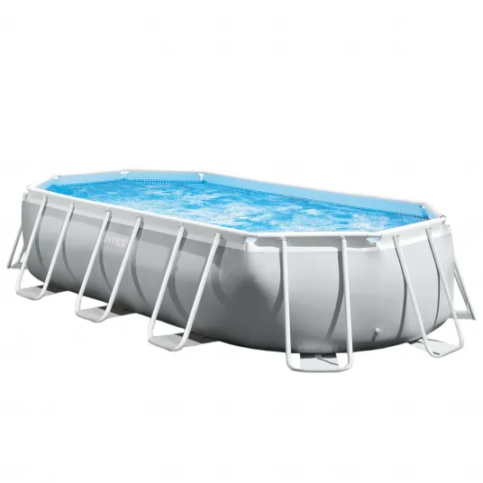 Piscina ovala 26796NP Intex Prism cadru metalic, pompa de filtrare, scara si panou protectie inclus, 5m x 2.74m x 1.22m