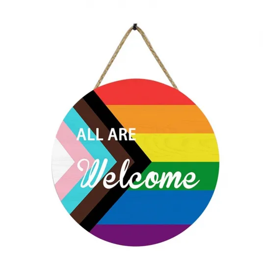 Placa decorativa pentru usa, semn de bun venit curcubeu, lemn, 30x30x0.5cm