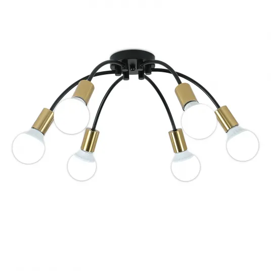 Plafoniera, Goeco, Metal, Dimensiune 55 * 20 cm, 6 * E27, Fara Sursa De Lumina, Negru/Auriu