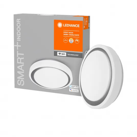 Plafoniera LED Ledvance SMART+ WIFI Orbis Moon 24W 2500 lm Dimmable este o solutie de iluminat inteligenta care combina designul modern cu tehnologia avansata. Aceasta plafoniera inteligenta este perfecta pentru a adauga ambianta si functionalitate oricarei incaperi, oferind atat lumina alba calda, cat si neutra, cu o gama de temperatura de culoare de 3000-6500K.