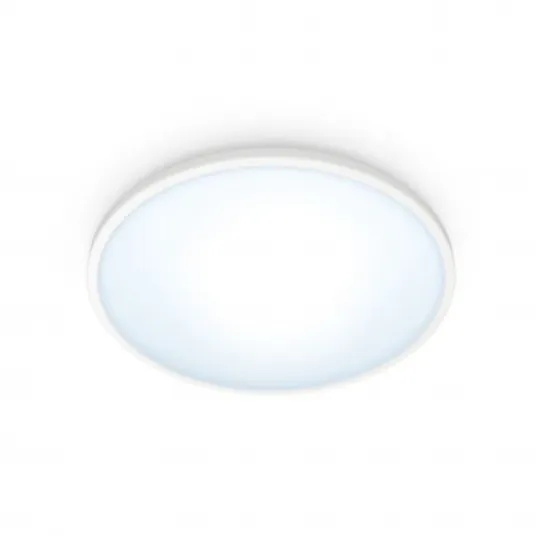 Plafoniera LED inteligenta WiZ SuperSlim, Wi-Fi, Bluetooth, 14W, 1300 lm, lumina alba reglabila, 24.2 cm, metal/plastic, Alb, clasa energetica E
