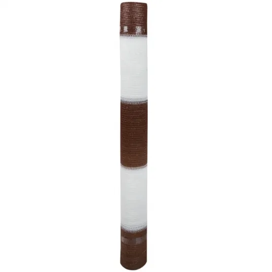 Plasa de umbrire de culoare maro-alb, fabricata din HDPE (polietilena de inalta densitate) cu margine intarita pe toata lungimea materialului si orificii intarite, dispuse din 10 in 10 cm pe toata lungimea sa pentru un montaj simplu si de durata.