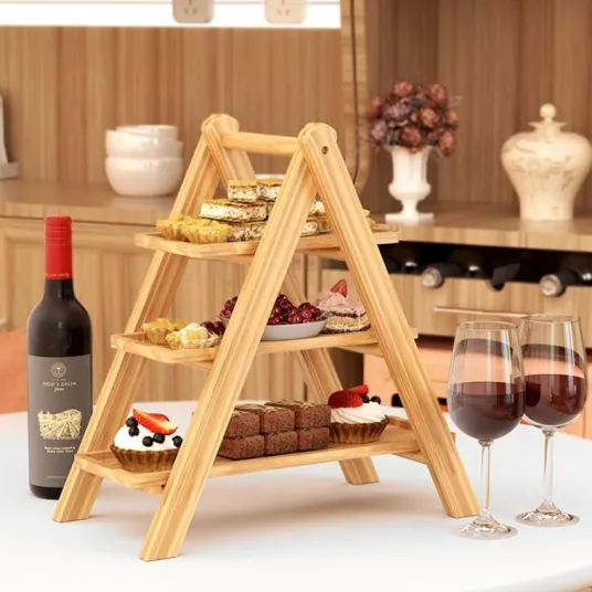 Platou din lemn cu 3 niveluri, design pliabil, pentru petreceri si evenimente, bejPlatou din lemn cu 3 niveluri, design pliabil, pentru petreceri si evenimente, bej223609866223609866