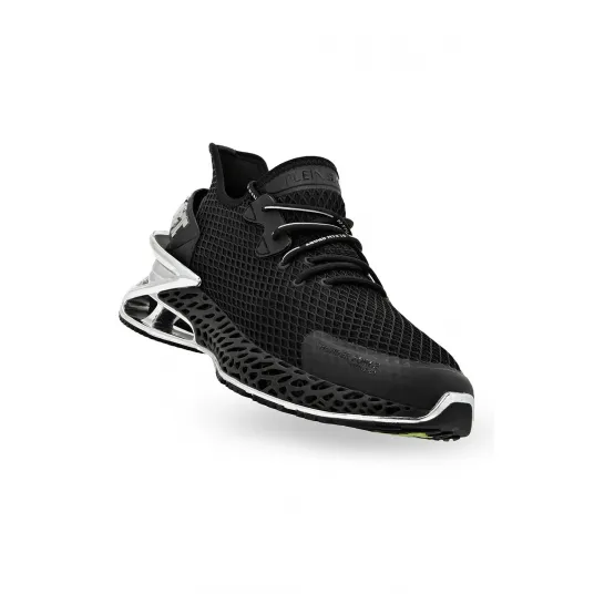 Plein Sport, Pantofi sport cu insertii de plasa, Negru, Argintiu, 43