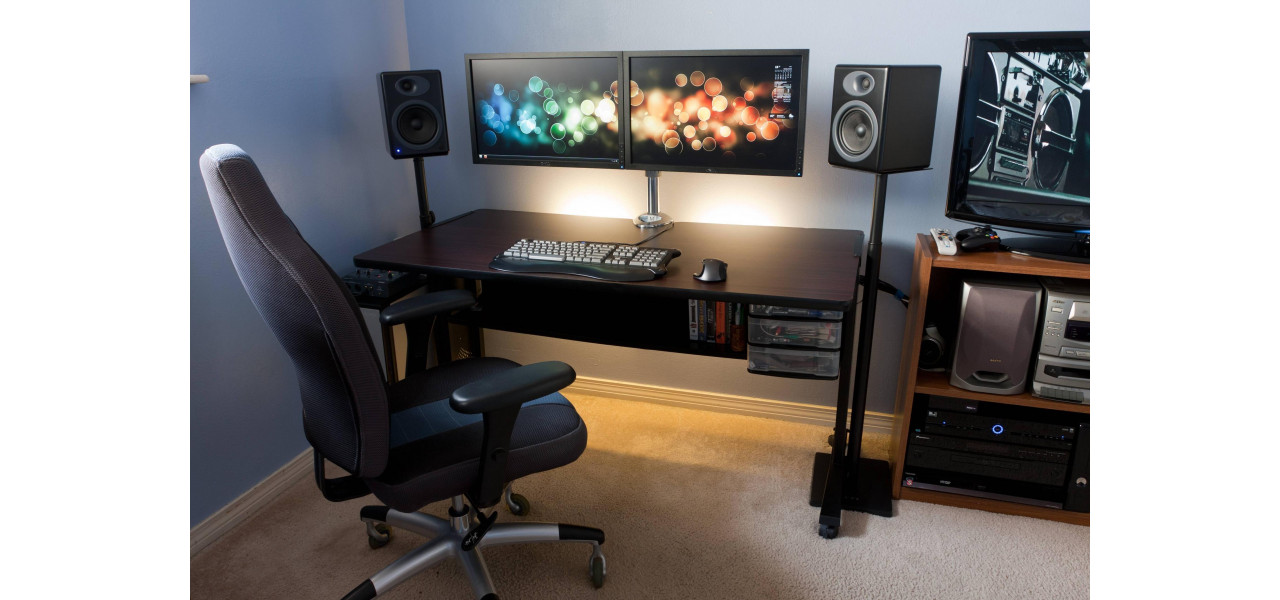 - Birou spatios: Cautati birouri cu suprafata mare pentru a gazdui monitorul mare al computerului, impreuna cu alte articole esentiale.