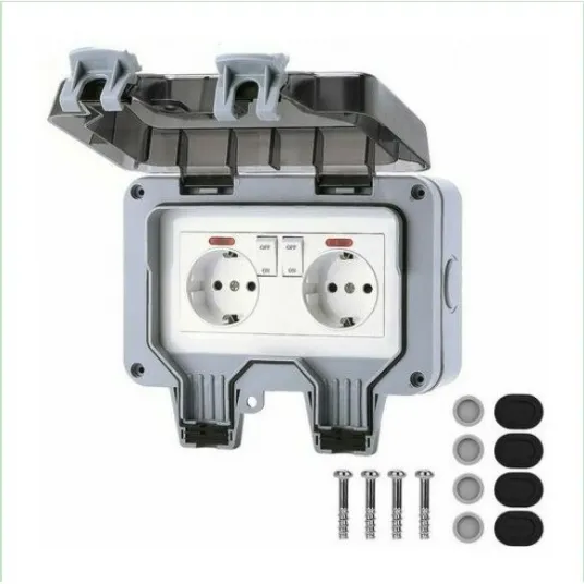 Priza de exterior, Dubla, Accesorii incluse, Rezistenta la apa, Gri