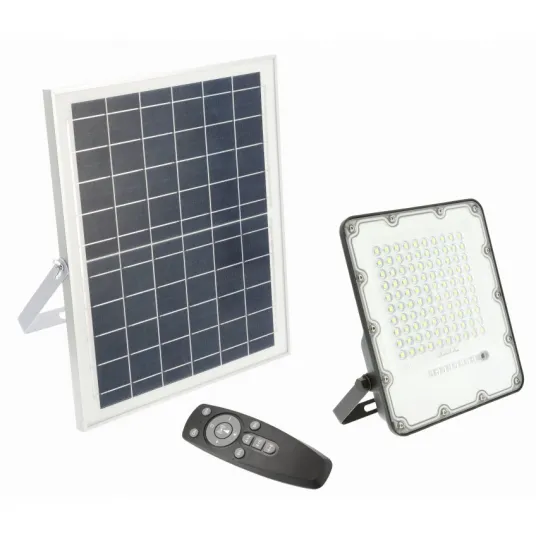 Proiector LED solar GTV Bravos LD-BRAVOS100W-64, cu telecomanda, 100W, 1000 lm, lumina rece (6400K), IP65