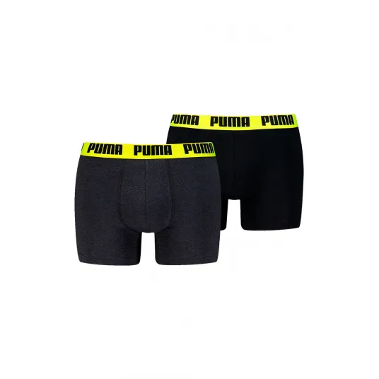 Puma, Set de boxeri cu banda logo in talie - 2 perechi, Negru, Galben, S