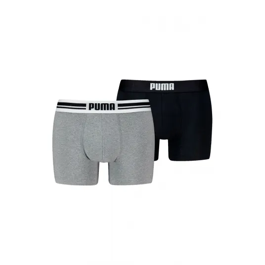 Puma, Set de boxeri cu banda logo in talie - 2 perechi, Negru, Gri deschis, XL