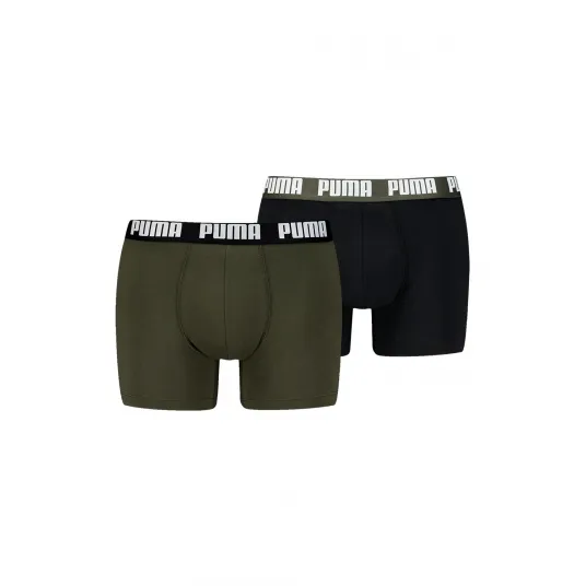 Puma, Set de boxeri cu banda logo in talie - 2 perechi, Negru, Kaki, S