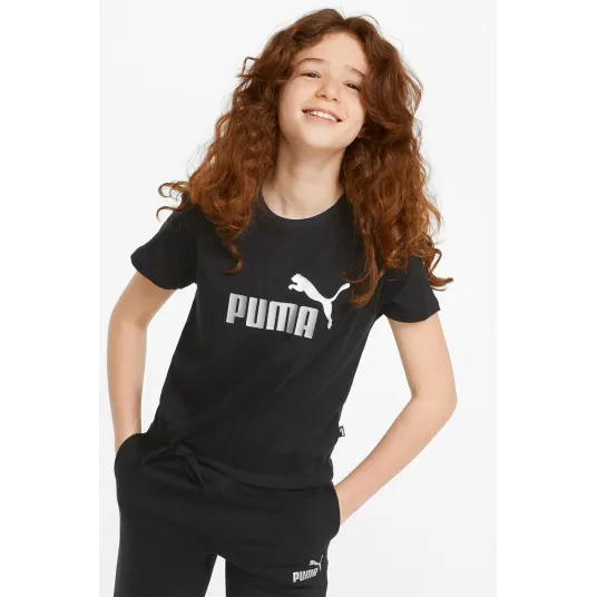 Puma, Tricou de bumbac cu imprimeu logo si detaliu innodat, Negru, 104 CM