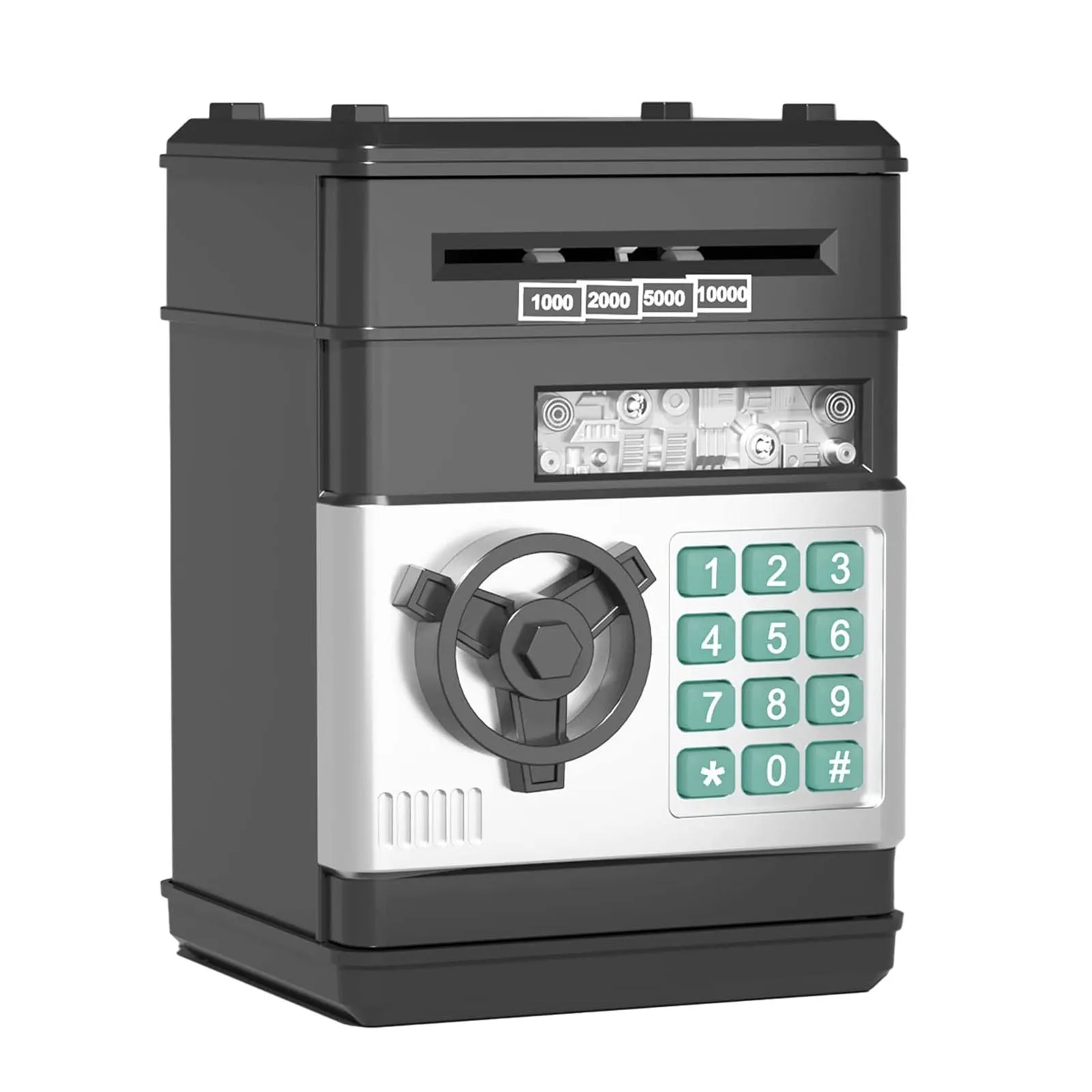 Pusculita electronica pentru copii, Darklove, Cu lumina si sunet prompt, Cu intrare pentru bani si monede, Usor de utilizat, 13.1x13.8x19.3cm, Plastic, Negru