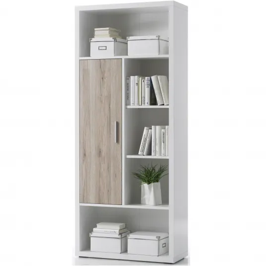 Raft Office Tokyo, 79x33x191 cm, 1 usa, 2 polite, culoare Alb, stejar SanRemo