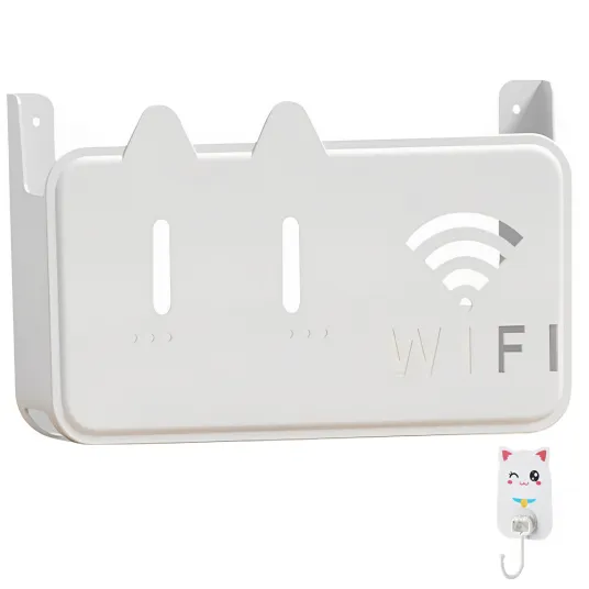 Raft Suport Router Wireless, BYONDSELF®, Carlig cu Alb, Pentru Mascare Fire si Echipamente WI-FI, Posibilitate Montare pe Perete, 24×14×6cm, ABS, Pisicuta, Alb