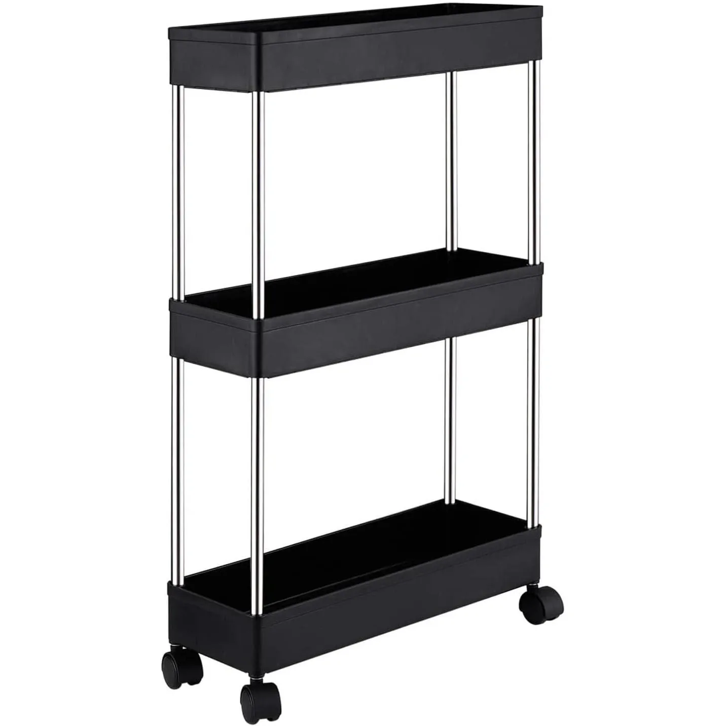 Raft universal depozitare, Quasar & Co.®, cu roti, 3 polite, pentru spatii inguste, dreptunghiular, 40 x 12 x 61 cm, ABS/otel inoxidabil, negru