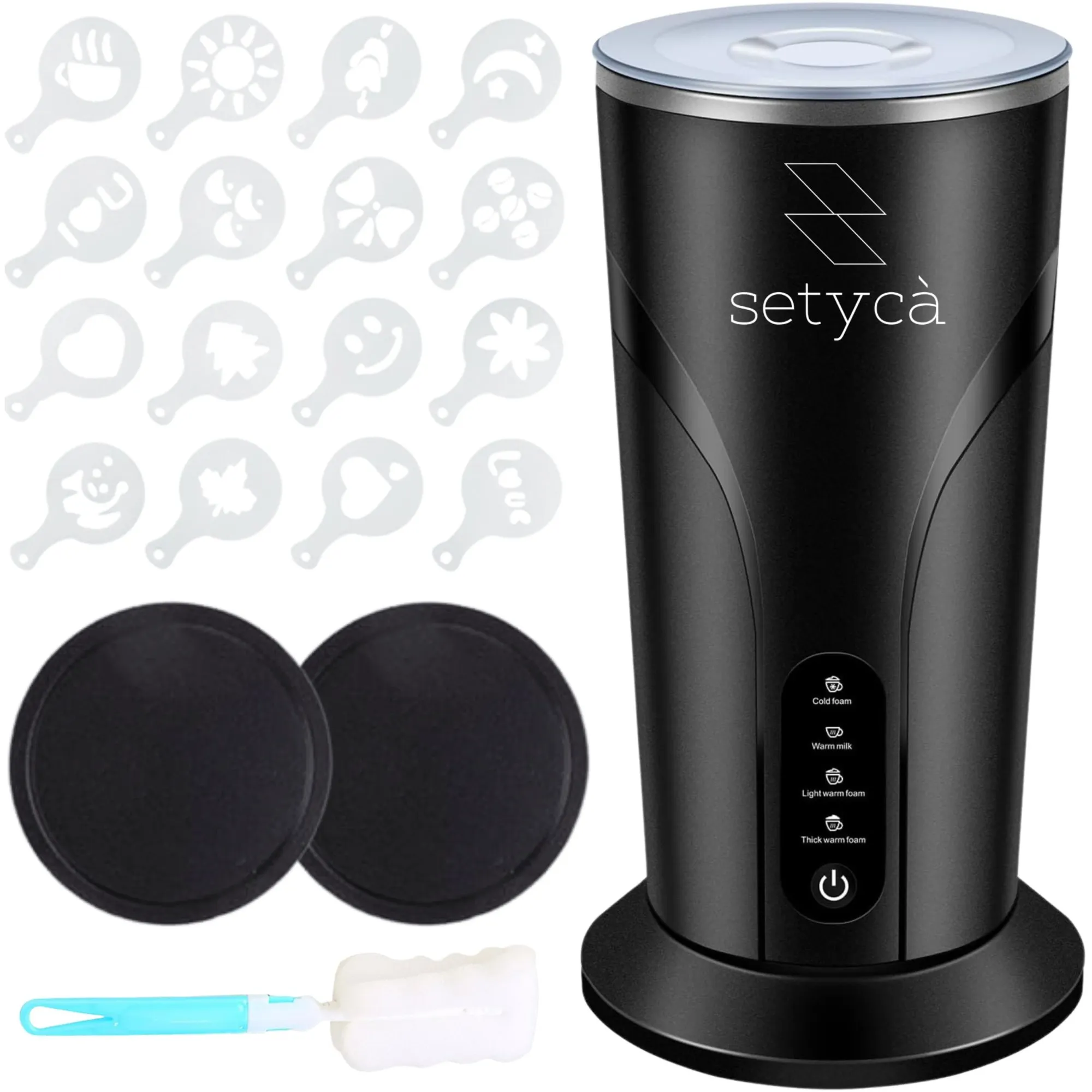 Aparat Spuma Lapte Setyca, Multifunctional, 4 in 1, 300 ml, Latte, Cappuccino, 16 Accesorii Personalizate si 2 Suporturi Pahar