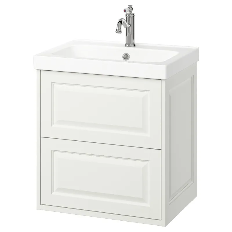 IKEA TÄNNFORSEN / ORRSJÖN Masca lavoar+sertare/lavoar/baterie, alb, 62x49x69 cmMobilierul de baie T?NNFORSEN cu margini tesite si aspect artizanal inspira eleganta clasica. Aceasta combinatie are 2 sertare incapatoare si loc pe marginea lavoarului pentru periute de dinti si sapun.223842282223842282