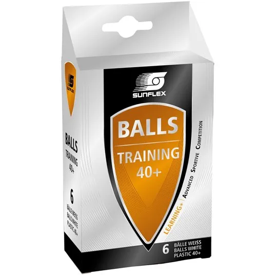 TT-balls sunflex TRAINING, alb, 6 buc., minge de plastic 40+, ambalat carton.