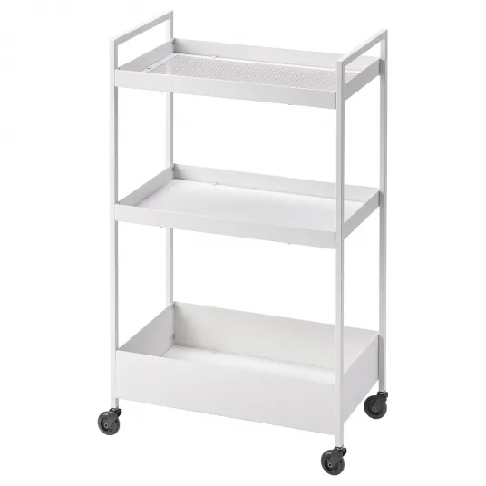Caruciorul alb IKEA NISSAFORS este conceput special pentru a oferi o organizare eficienta a bunurilor dumneavoastra. Cu cele trei rafturi spatioase, puteti depozita si accesa cu usurinta o varietate de articole, inclusiv rechizite de bucatarie, articole de baza pentru baie, rechizite de birou si multe altele. Designul deschis permite vizibilitate si accesibilitate usoare, asigurandu-va ca puteti gasi ceea ce aveti nevoie atunci cand aveti nevoie.