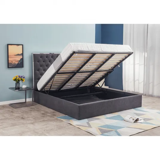 Pat tapitat dormitor lux ,160x200 cm sau 180x200 cm,cu lada, inclus suport saltea metalic-rabatabil ,stofa gri inchis,Bortis Impex