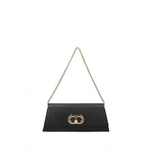Roberta Rossi, Geanta de piele cu bareta detasabila din lant, de umar 27025, Negru