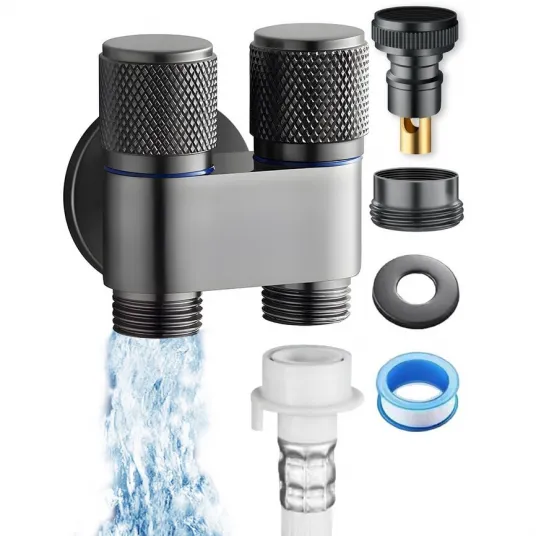 Robinet pentru masina de spalat, Excitat®, Cupru, placare, Tija de oprire a apei, gri