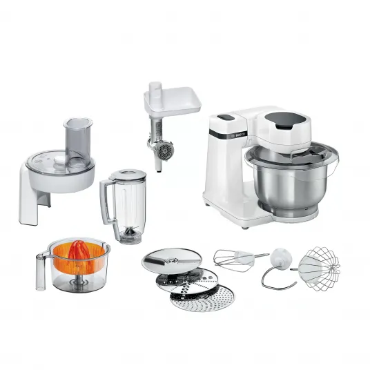BOSCH, un brand de uz casnic cunoscut si de incredere, va prezinta Mum Serie 2 MUMS2EW40. Este un robot de bucatarie versatil care este perfect pentru toate nevoile tale din bucatarie. Dispozitivul este echipat cu un motor puternic de 700 W care va va face experienta de procesare a alimentelor fara efort si rapida.