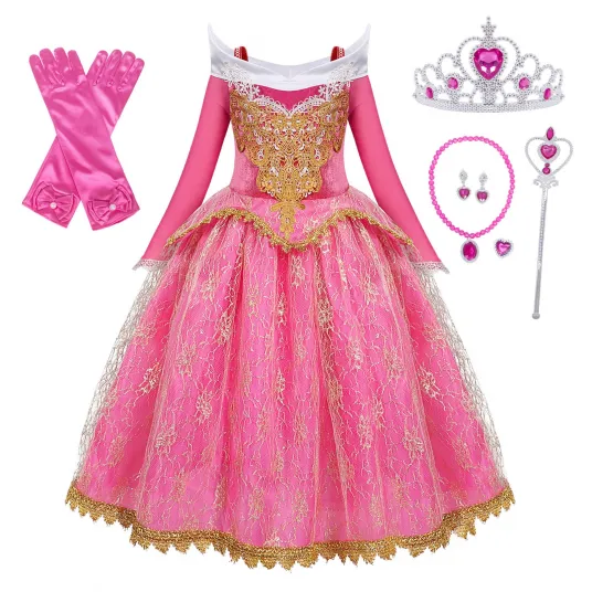 Rochie Printesa Aurora, AmzBarleyВ®, Halloween, Carnaval, Craciun, Paste, Ziua Copilului, Ziua Indragostitilor, 2-3 ani, 100 cm, Roz