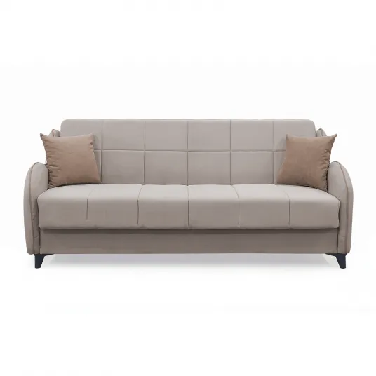 Suprafata de dormit: , Lungime: 175 cm , Latime: 105 cm Dimensiuni canapea (gabarit): , Lungime: 198 cm , Adancime totala: 80 cm , Inaltime totala: 85 cm , Inaltime sezut: cm , Numar de locuri recomandat: 3 Materiale: , Perne decorative incluse , Lemn masiv , Elemente PAL si PFL , Sezut cu arcuri tip bonnel: grosime sarma 2.4 mm , Minet 150g m ² , Pasla 1200g m ² , Spuma poliuretanica (burete) , Material acoperire: Stofa , Accesorii PVC Informatii suplimentare: , Se livreaza partial montat, ambalat in carton si folie , Produsul vine insotit schita de montaj , Numar colete: 3 , Greutate: 50 kg