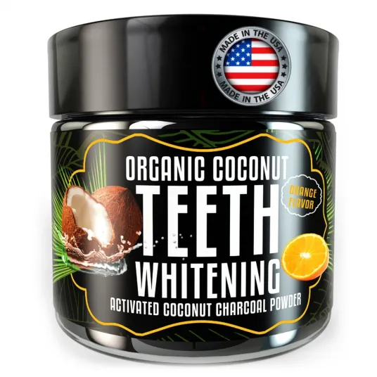 Carbune activ BIO pentru albirea dintilor Odissey Life fabricat in SUA, pudra organica din carbune activ nuca de cocos, portocala, 30 g