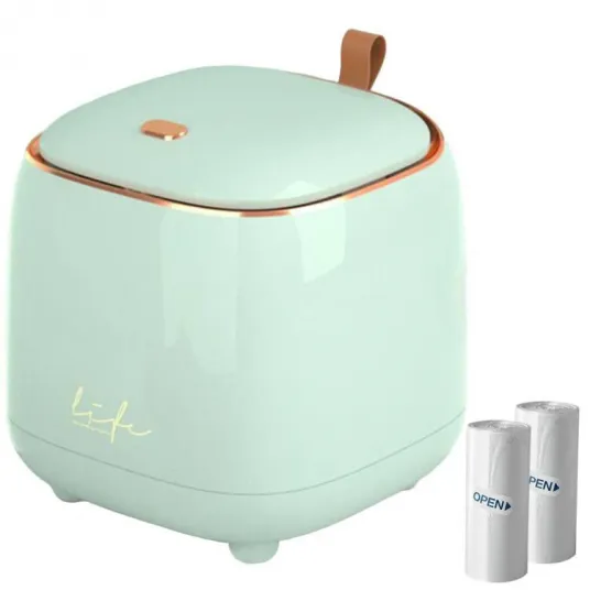 Cos gunoi mini, BonsMar, ABS, 145*145*150 mm, se livreaza cu doua role (30 de bucati) de saci de gunoi, verde deschis
