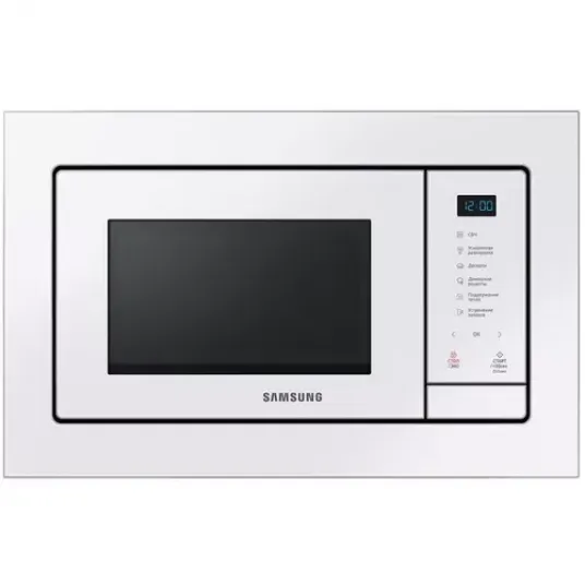 - Встраиваемая микроволновая печь Samsung MS23A7118AW/BW — это стильный и компактный прибор, который органично впишется в любую кухню.
