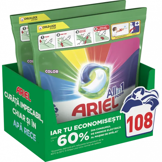 Detergent de rufe capsule Ariel All in One PODS Color, 2x54 buc, 108 spalari