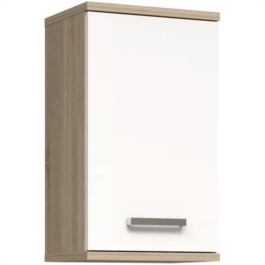 Dulap suspendat pentru baie Forte Veris, 1 usa, 40.2x 29x 68.8 cm, stejar Sonoma/ alb super lucios