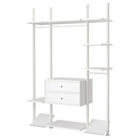 Dulapul combinat IKEA ELVARLI nu numai ca ofera capabilitati excelente de organizare, dar se mandreste si cu un design modern si minimalist. Finisajul sau alb elegant completeaza fara efort orice stil interior, indiferent daca preferati o estetica contemporana sau traditionala. Spune la revedere spatiilor aglomerate si bun venit in casa ta unui sistem de garderoba atragator din punct de vedere vizual.
