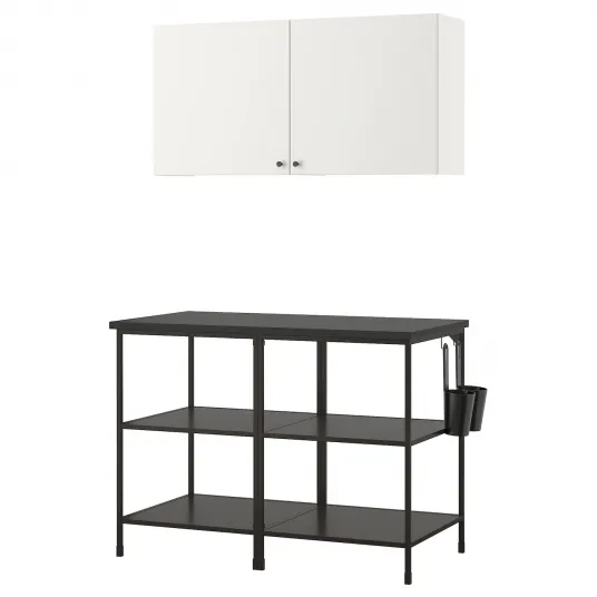 Семейство ENHET поможет вам создать новое решение на кухне. Идеальное сочетание открытого и закрытого хранения и рабочей поверхности, достаточно большой для портативной плиты и кофеварки.