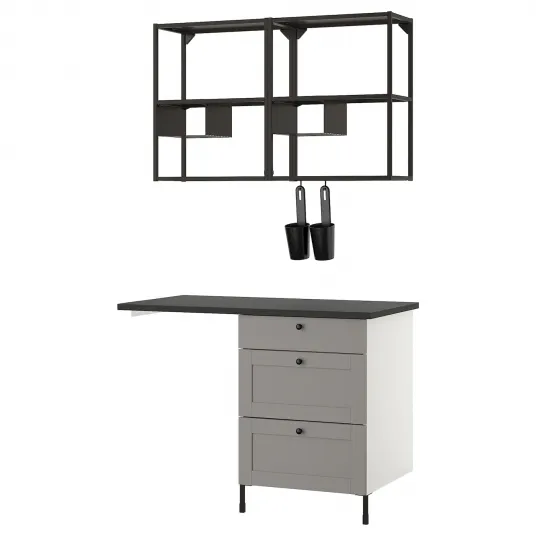 Семейство ENHET поможет вам создать новое решение на кухне. Это идеальное сочетание открытого и закрытого хранения, а также место для отдельно стоящего холодильника.