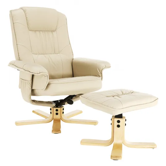 Fotoliu de lux , taburet inclus ,relaxant ,piele ecologica crem-bej,reglabil, suport pentru picioare