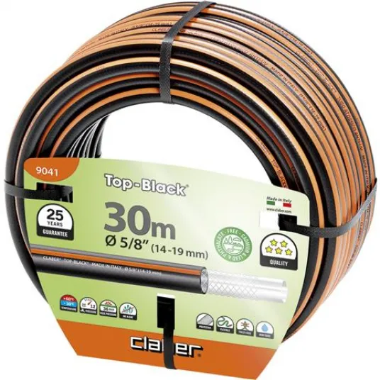 Садовый шланг Claber Top Black 9039, диаметр 5/8, 14-19 мм, длина 30 м, давление 12 бар, обработка против водорослей, устойчивость к УФ-излучению