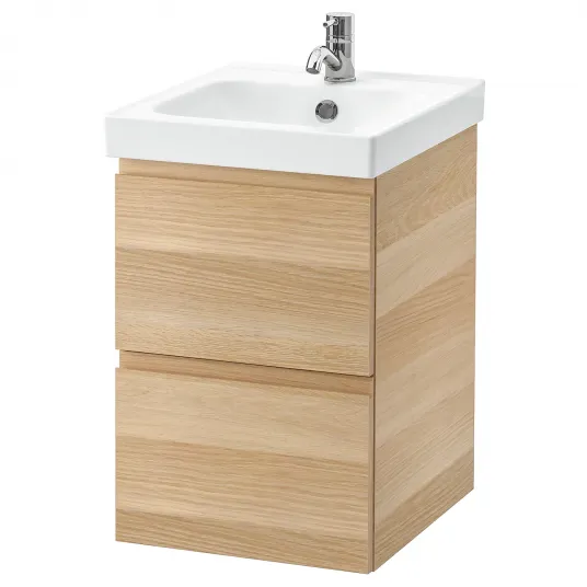 GODMORGON/ODENSVIK Тумба под умывальник с 2 ящиками, имитация сOSTаренного дуба/смеситель PilkAn, 43x49x64 см