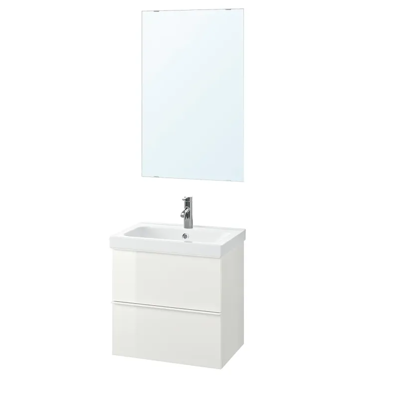 GODMORGON/ODENSVIK Набор мебели для ванной, 4 предмета, белый глянцевый/Смеситель ДальскАр, 63 см