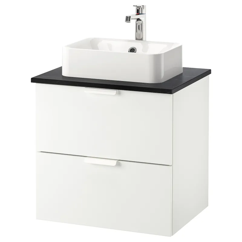 GODMORGON/TOLKEN / HORVIK Suport lavoar+blat 45x45 lavoar, alb/aspect marmura neagra baterie Brogrund, 62x49x72 cm