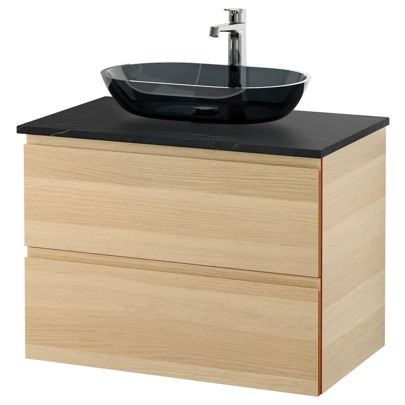 GODMORGONTOLKEN OXMYREN Маска lavoar+lavoar blat аспект stejar antichizataspect marmura neagra baterie Brogrund 82x49x72 см