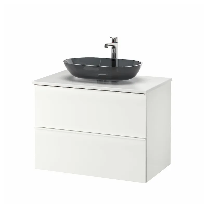 - Наименование товара: GODMORGON/TOLKEN / OXMYREN Маска для умывальника+раковина сверху, белый глянцевый/под мрамор, смеситель Brogrund, 82x49x72 см
