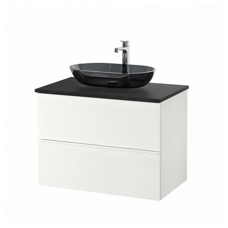 - Модель продукта: ГОДМОРГОН/ТОЛКЕН / ОКСМИРЕН Маска для умывальника+раковина сверху, глянцевый белый/черный мрамор